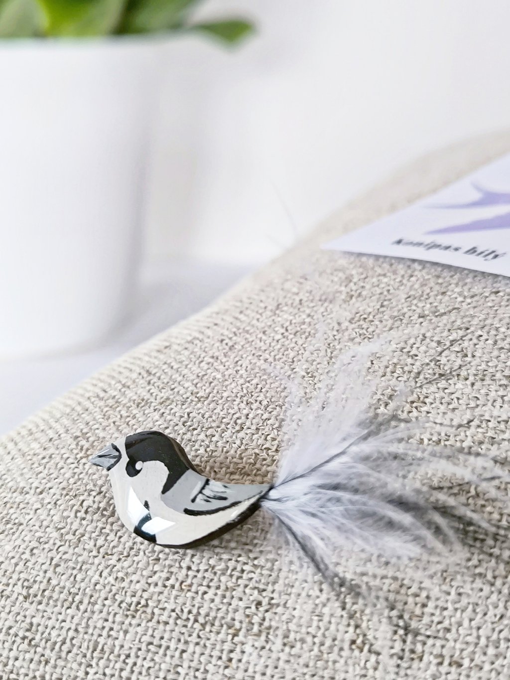 Jak vykouzlit z nudného roláku originální model? No přece originálním módním doplňkem, třeba ručně vyráběnou broží české výroby. Tato brož je inspirovaná konipasem bílým (Motacilla alba) - lidově se mu také často říká třasořitka nebo cácorka, díky jeho neposednému pohupování dlouhým, štíhlým ocasem.