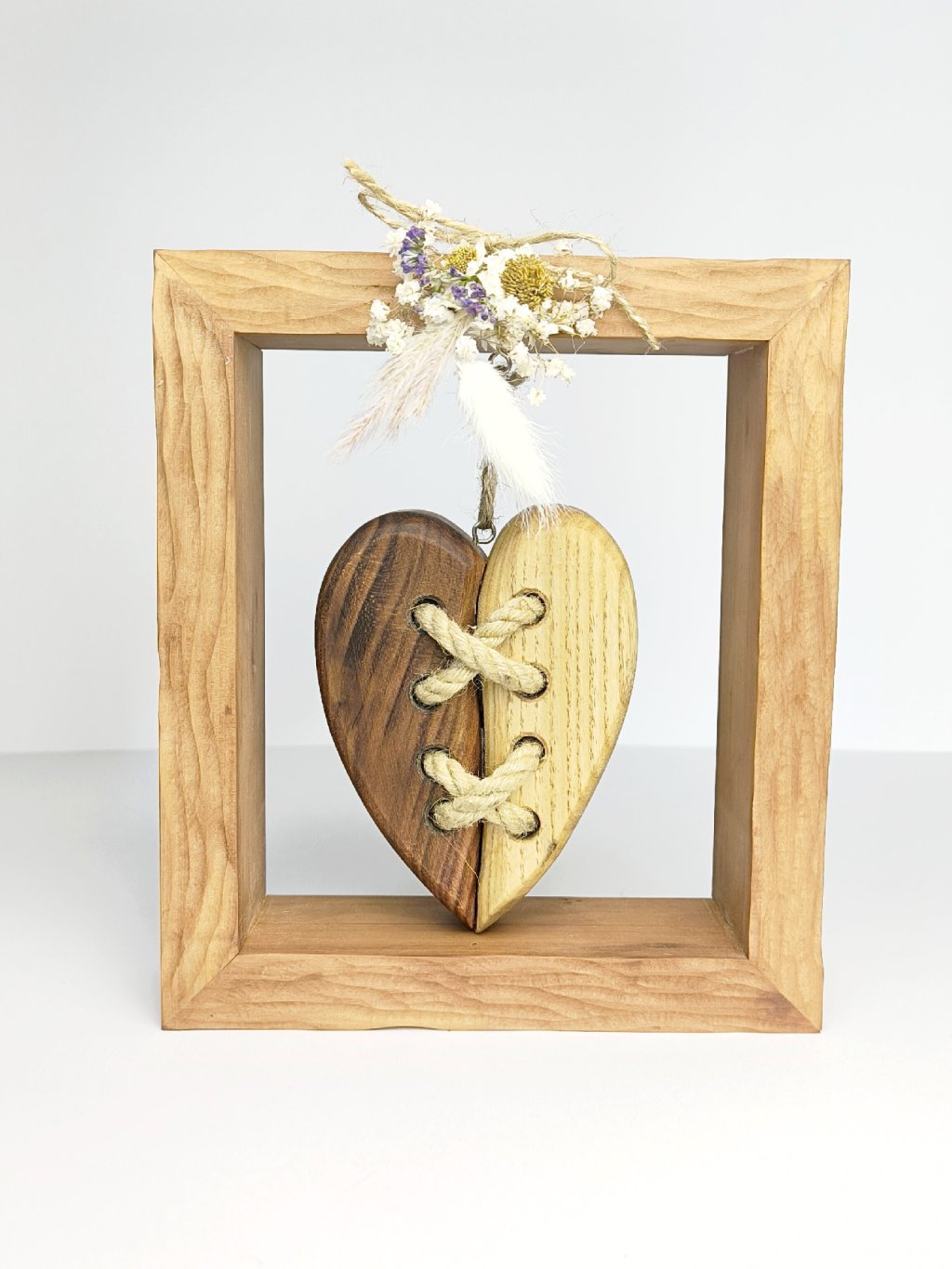 Dekorace je vyrobená z třešňového a dubového masivu a ozdobené sušenými květinami. Zkrášlí stěny vašeho domova a dodá mu letmý dotek přírody.