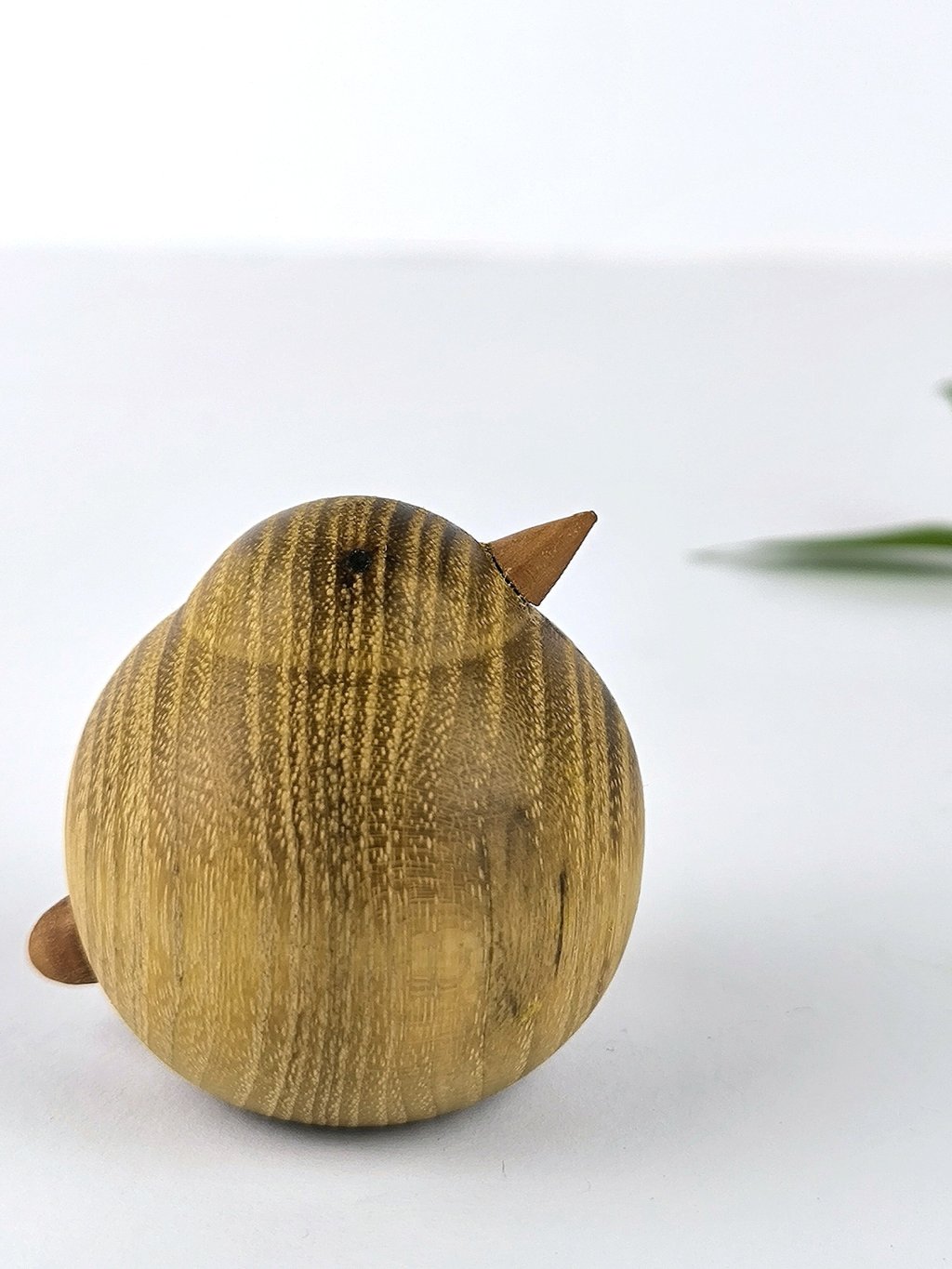 Ručně vysoustružený ptáček z masivního dubového dřeva v minimalistickém designu pro ty, co dokáží ocenit jednoduchost a krásu přírodních materiálů.