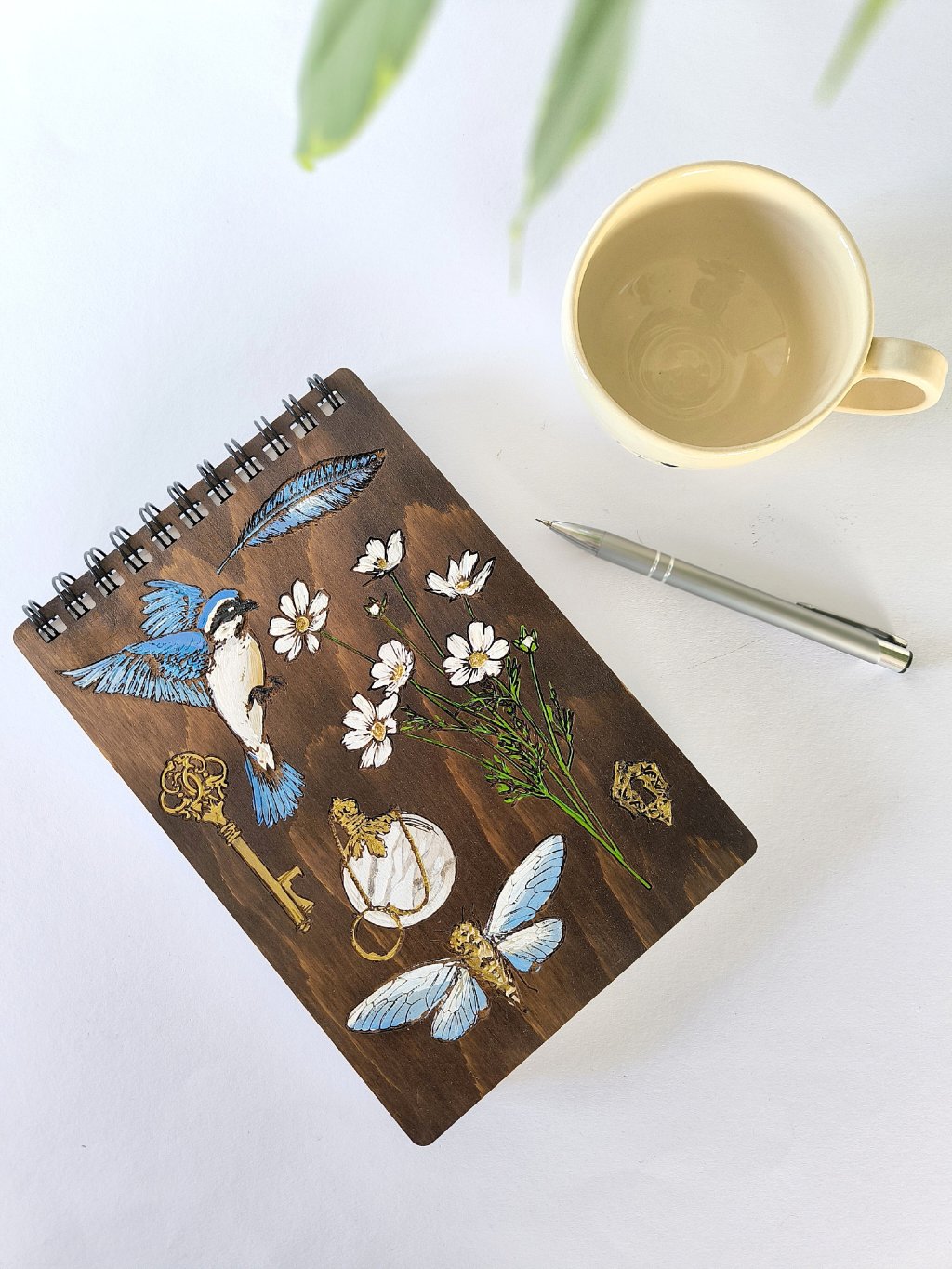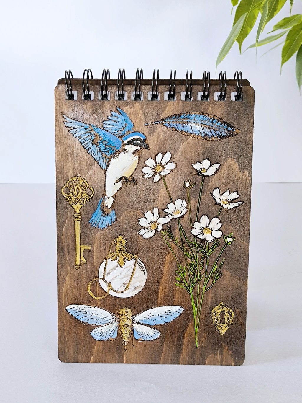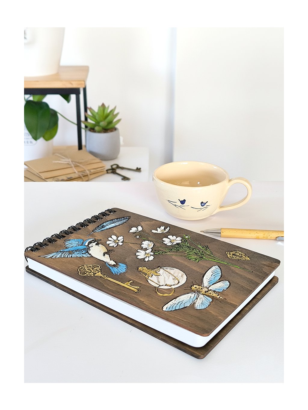 Desky skicáku jsou vyrobeny z kvalitní dřevěné překližky, do které je vypálená a ručně domalovaná autorská ilustrace, každý kus je originálem. Velikost A5 je praktická, nezabere moc místa a můžete jej díky tomu nosit téměř kamkoliv a mít ho po ruce.