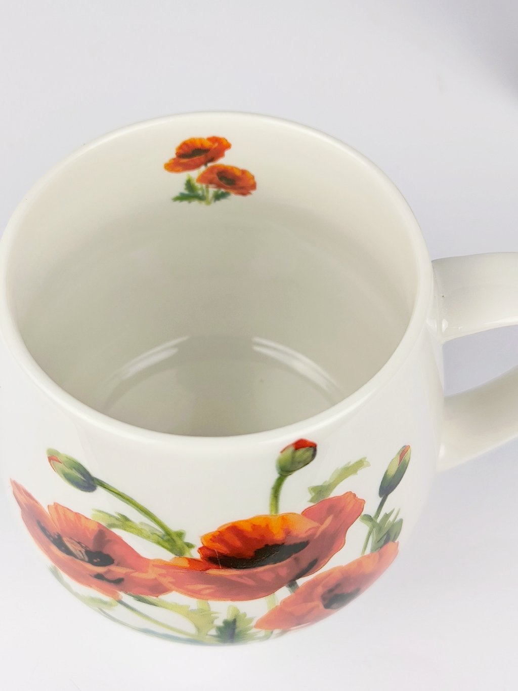 Hrníček jako stvořený pro romantické letní dny... Ale i v zimě bude mít své kouzlo, kvetoucí rudé vlčí máky rozzáří pochmurný den. Dodáme jej v hezké dárkové krabičce.