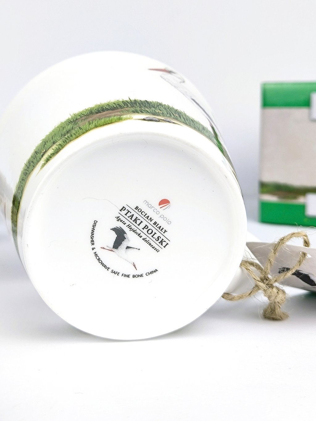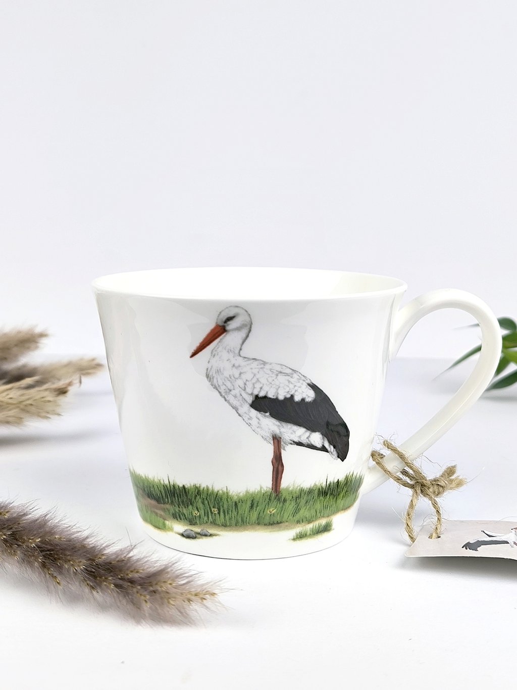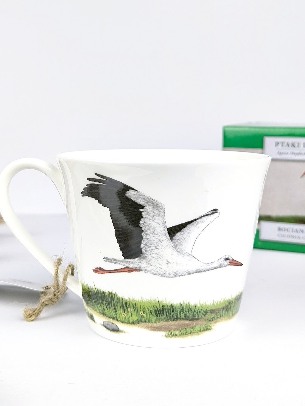 Jemný, lehoučký hrníček z kvalitního bílého porcelánu s obrázkem oblíbeného obyvatele našich komínů - čápa z ptačí kolekce porcelánu s autorskými ilustracemi od polské výtvarnice Agaty Hajdecké.