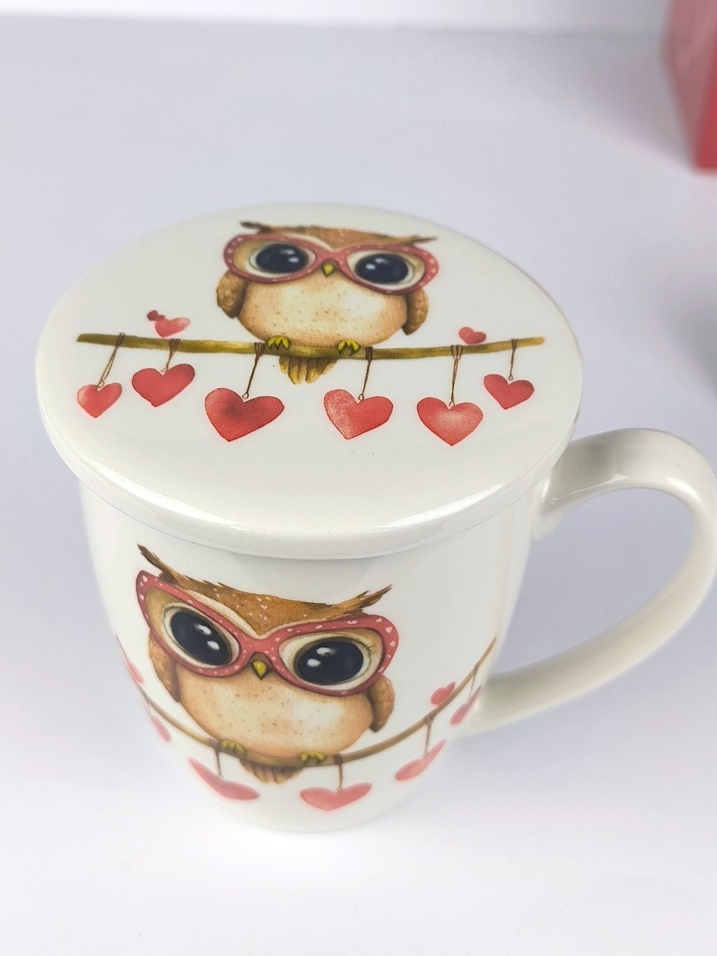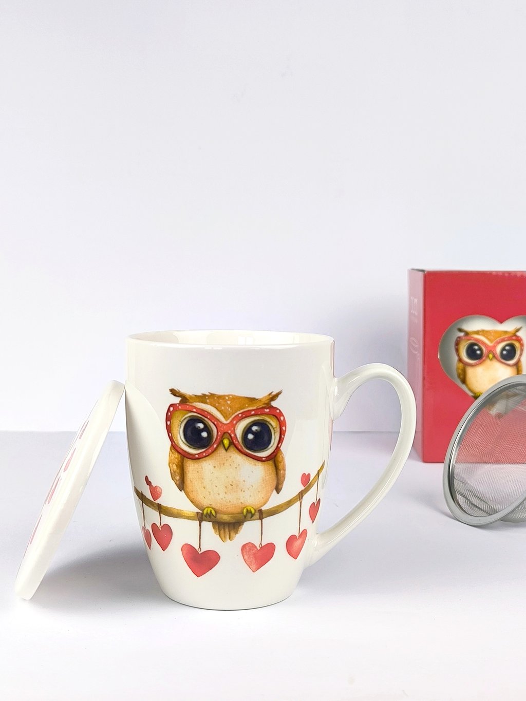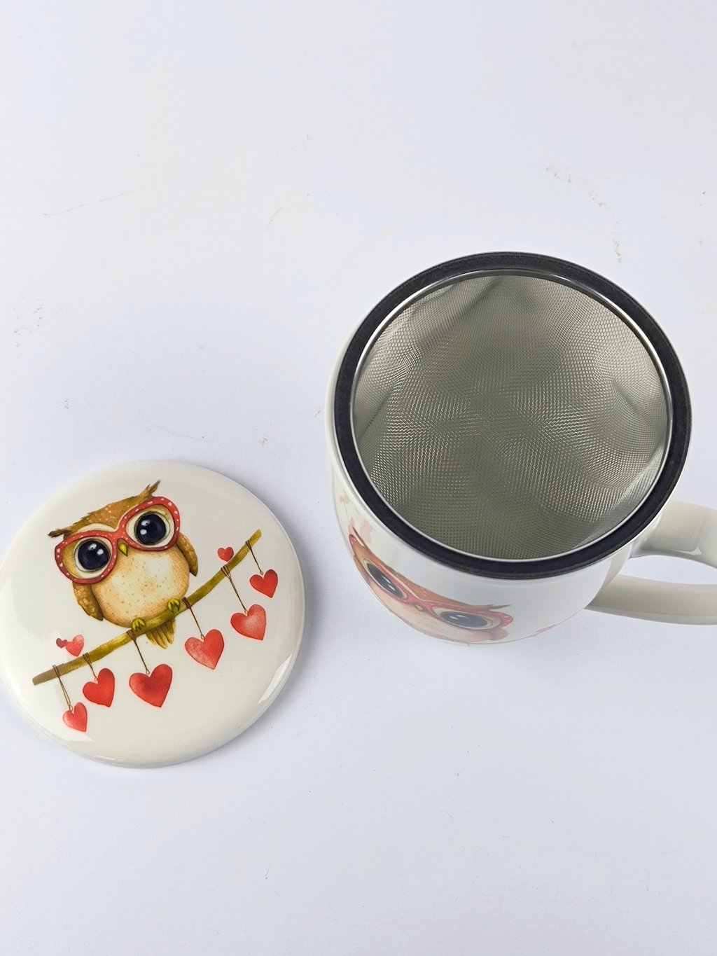 Porcelánový hrníček pro milovníky sov a soviček. Hrníček má kovové sítko na bylinky a víčko, aby Váš čaj zůstal co nejdéle teplý. Dostanete jej v dárkové krabičce, takže ho můžete využít i jako hezký dárek.