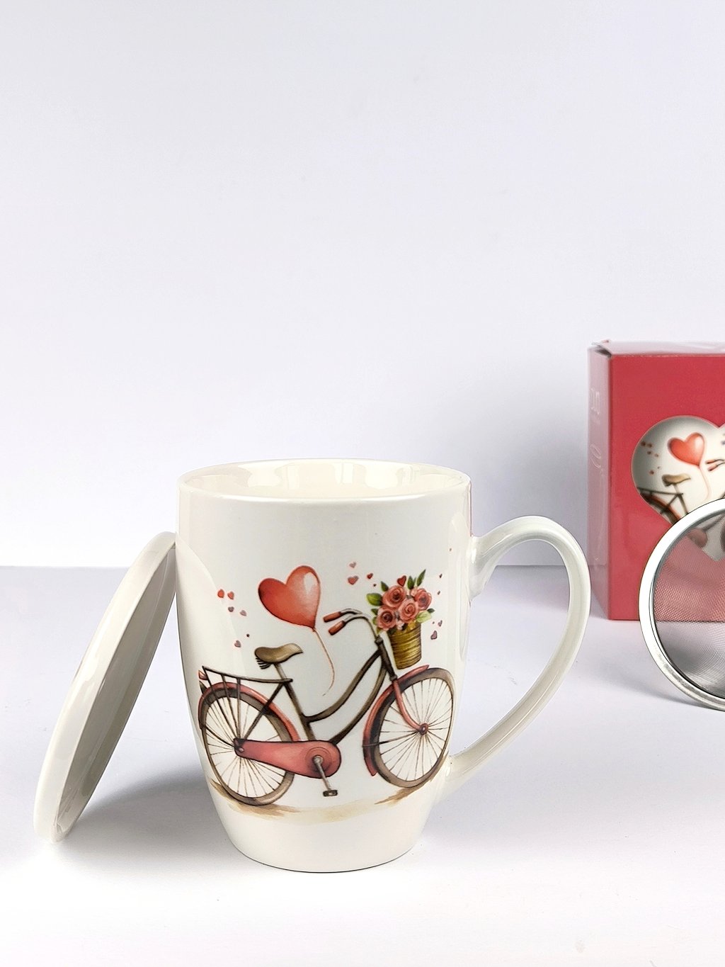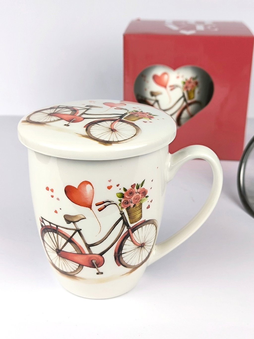 Zamilovaný hrníček s kolem si zamilujete pro jeho praktičnost. Hrníček má kovové sítko na bylinky a víčko, aby Váš čaj zůstal co nejdéle teplý.