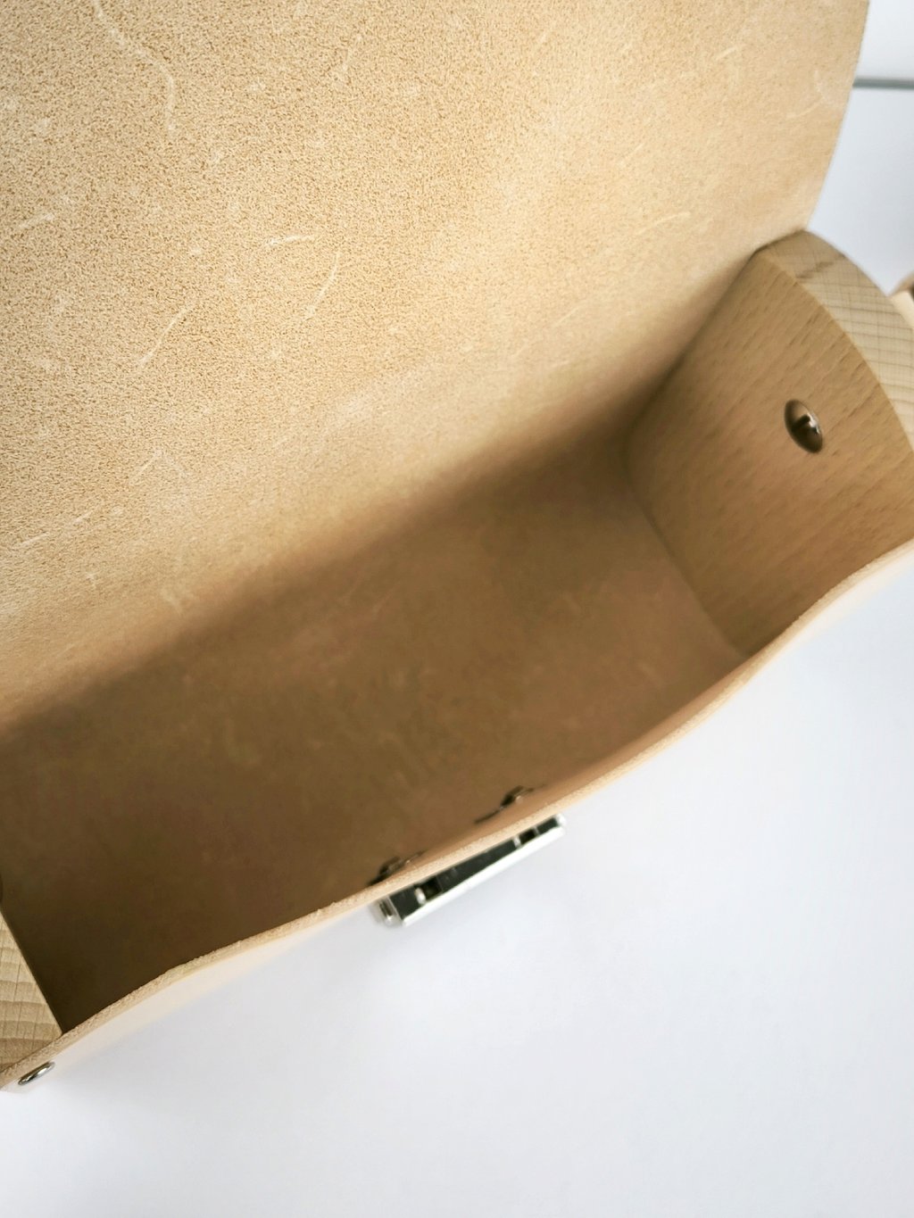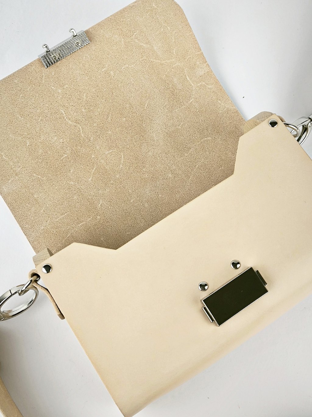 Elegantní kabelka pro ženy, které milují originalitu, přírodní materiály a poctivou ruční práci. Tato stylová kabelka je vyrobena z velmi kvalitní a pevné hovězí kůže v jemné béžové barvě. Boky kabelky tvoří hladce opracované bukové dřevo, které jí dodává jedinečný vzhled a pevnost.