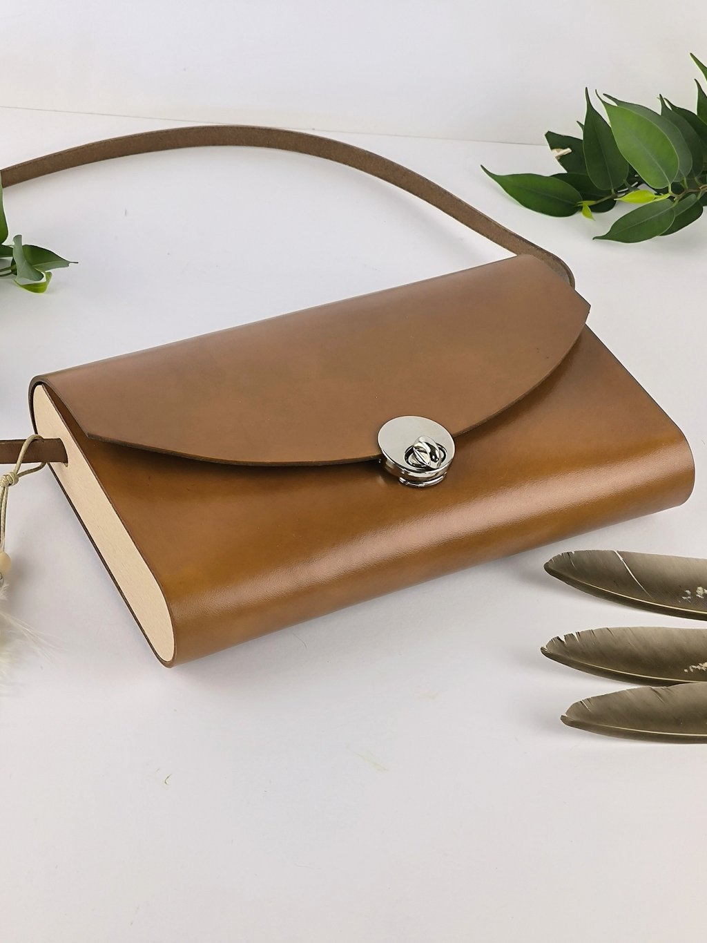 Malá kožená kabelka s bukovým dřevem + DÁREK přívěsek z peříček