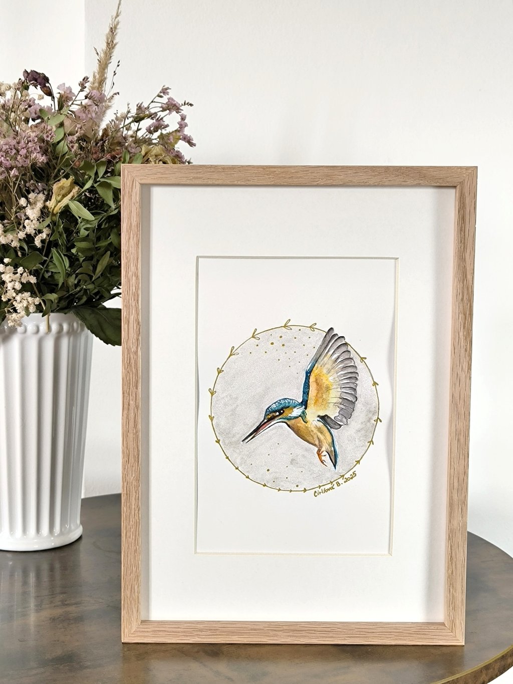 Dodáme jej v dřevěném dubovém rámu s paspartou. Rámeček má akrylátové sklo, které je na rozdíl od klasického skla lehké a velmi odolné, nemusíte se tedy bát poškození během dopravy.