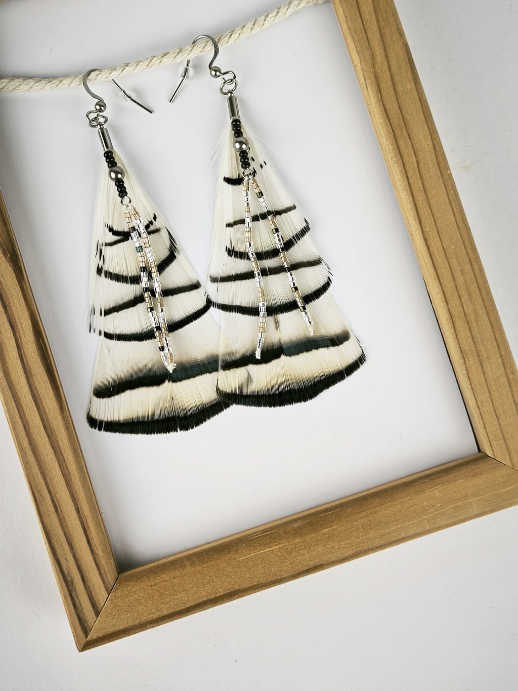 Náušnice jsou vyrobené z peří, které je získané eticky a to sběrem peříček, které ptáci přirozeně ztratili. Použité komponenty jsou z chirurgické oceli, která je hypoalergenní, odolná a vhodná i pro citlivé uši. Dekorativní prvky tvoří japonské korálky Miyuki, známé svou precizností, stálobarevností a leskem. Výsledkem je lehký, elegantní a stylový šperk, který podtrhne vaši osobnost a přinese do každodenního outfitu kousek jemnosti a přírody.