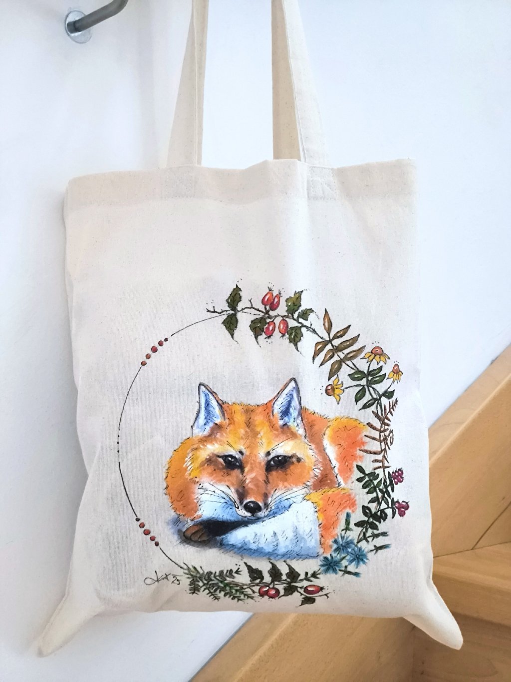 Noste svůj nákup originálně v ručně malované plátěné tašce s krásným obrázkem lišky. 100% bavlna, ideální na nákupy i každodenní nošení. Každý kus je originál – žádná taška není úplně stejná!