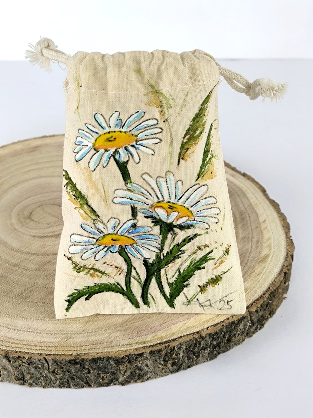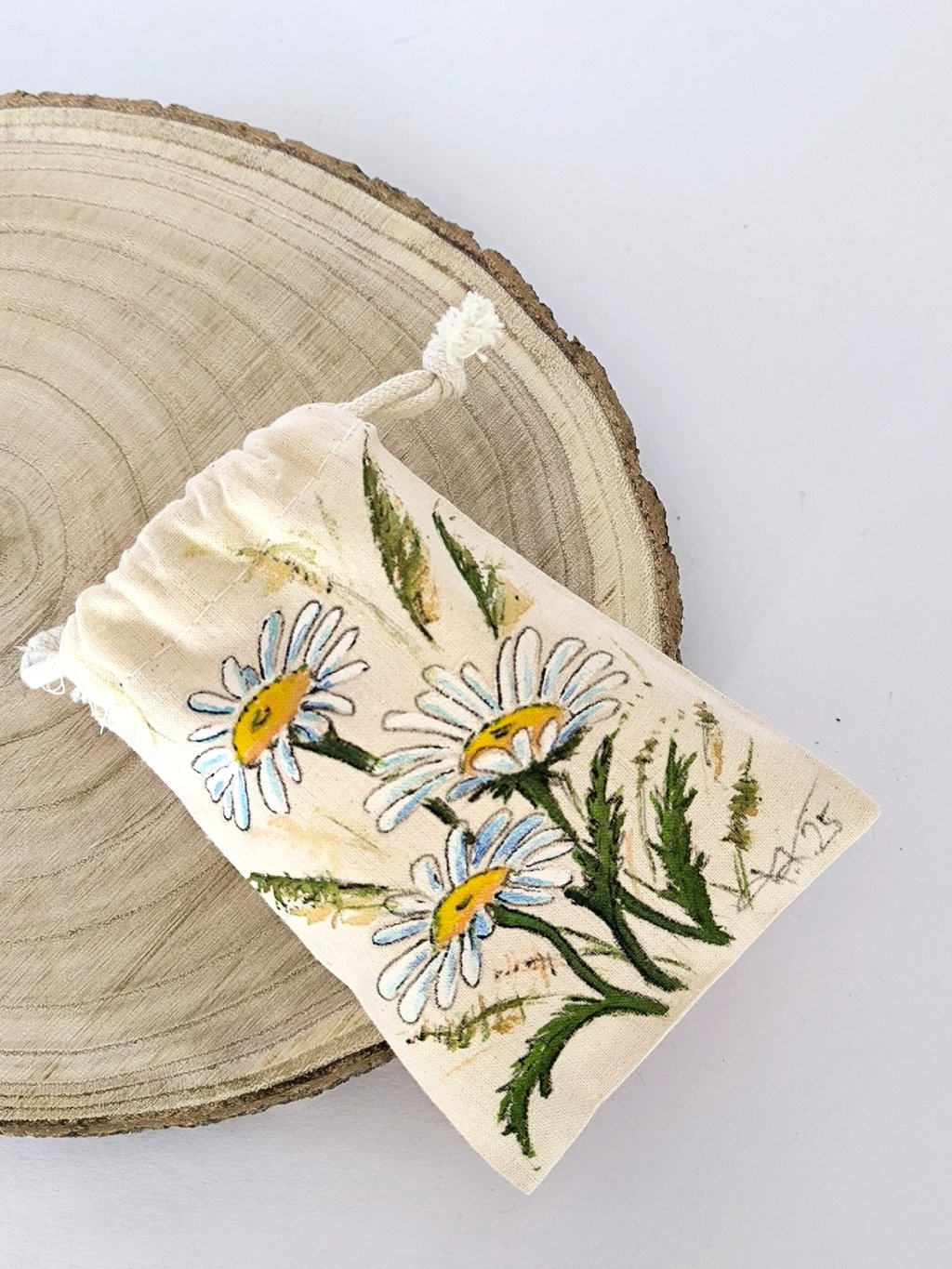 Přineste si malý kousek umění do kuchyně ručně malovaným bavlněným pytlíčkem na bylinky. Pytlíček je ušitý z přírodní bavlny a využijete jej na sušené bylinky, koření, čaje nebo jiné drobnosti. Látkové pytlíky jsou prodyšné, dají se opakovaně používat a mile zútulní vaši kuchyň.