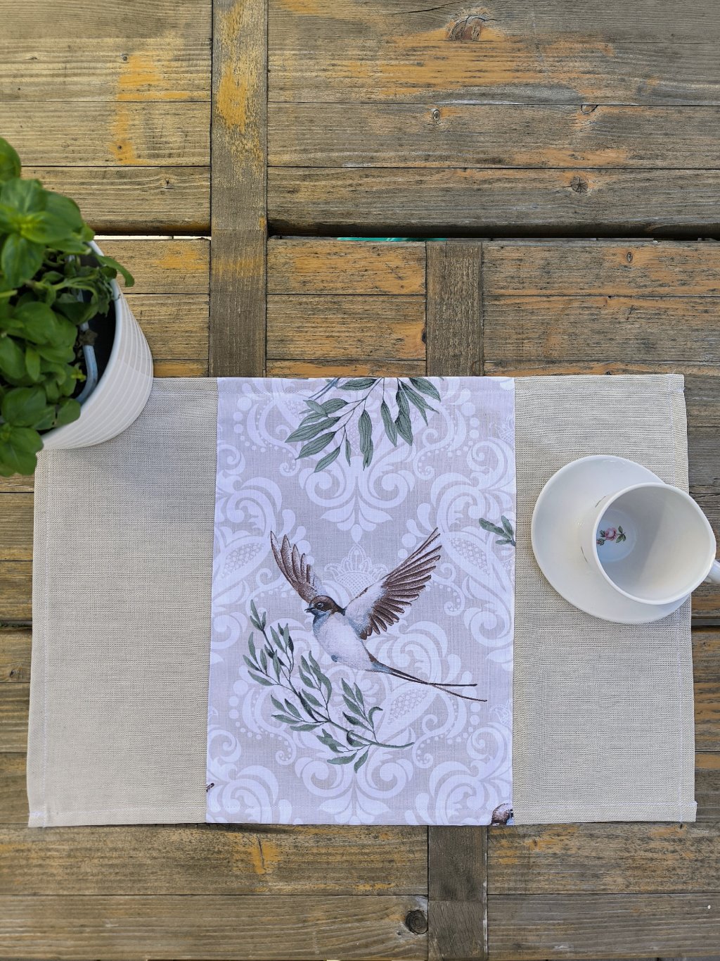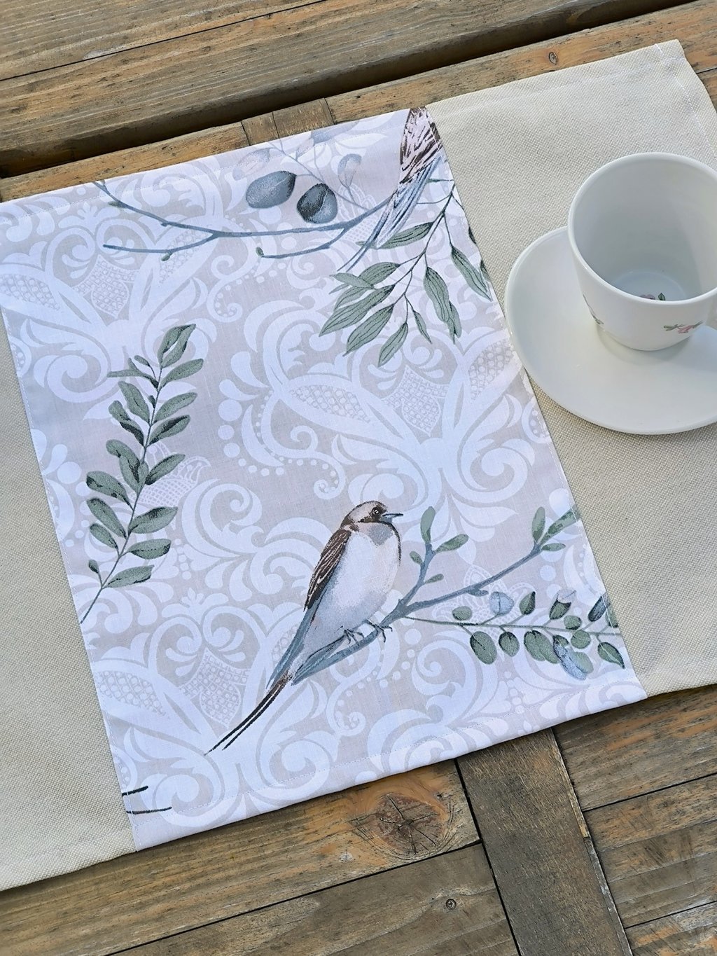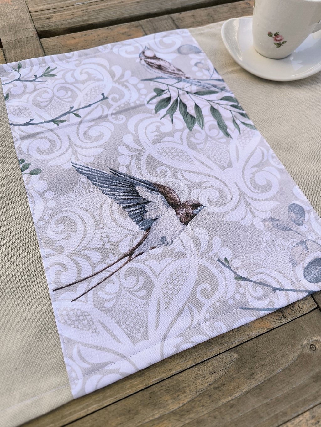 Upozornění: ptáčkové na látce jsou na každém kusu prostírání trochu jiní, podle toho, jak byla střižena látka