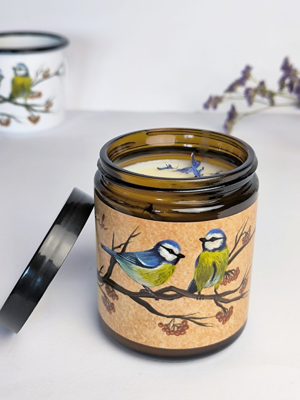 Ručně vyráběná svíčka ve skleněné dóze s jemnou vůní bylinek pro klidné večery. Svíčka je vyrobena ze sójového vosku a ozdobena sušenými květy chrpy. Na dóze je autorský obrázek sýkorek, který u nás najdete i na tomto plechovém hrníčku - Hrnek Sýkorky. Takže si můžete užít pohodu u svíčky se svým oblíbeným nápojem v ruce v hrníčku, který Vám bude ke svíčce ladit