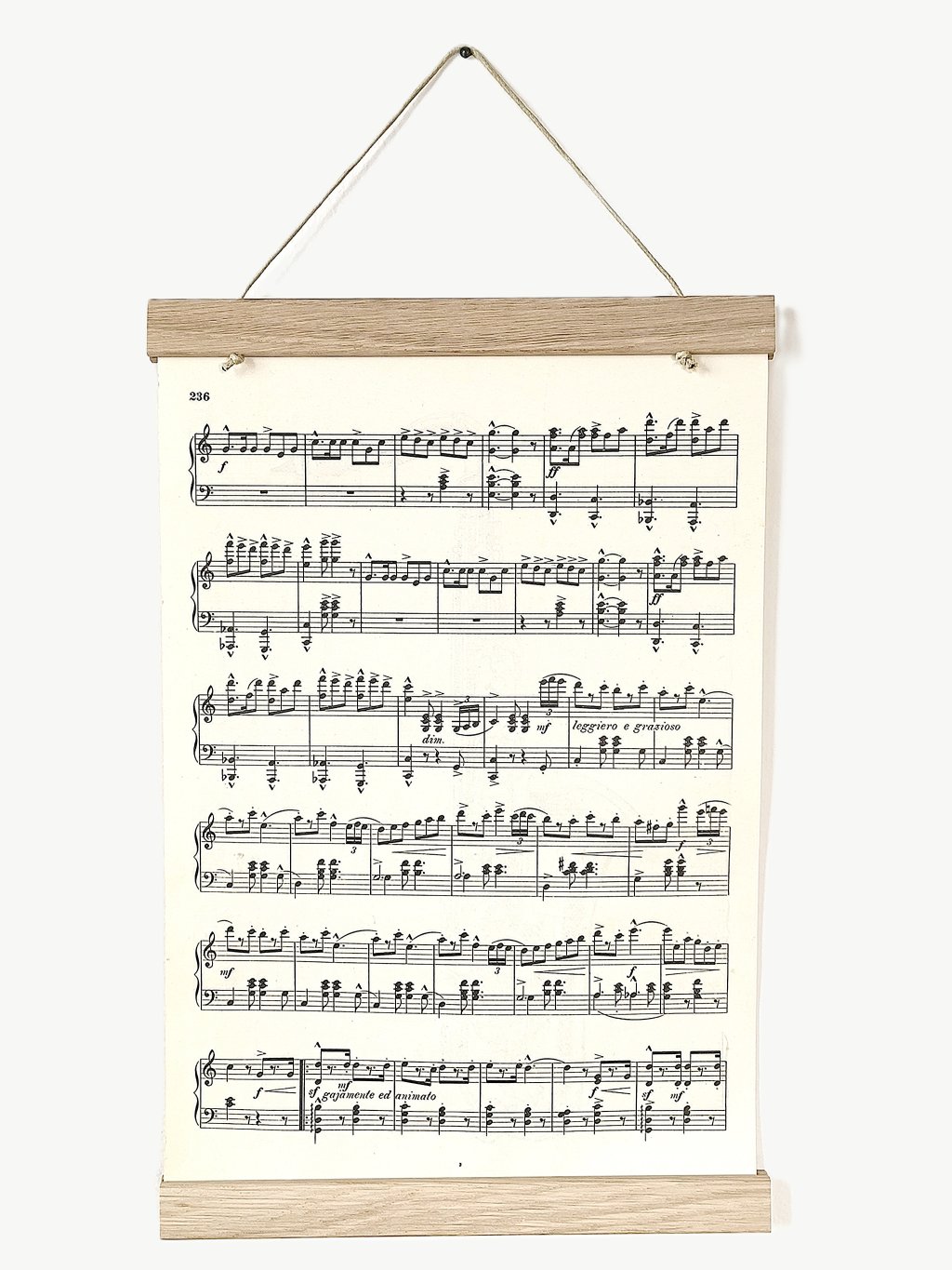 Obrázek dodáme v magnetických lištách z dubového dřeva, mezi které se obrázek jednoduše vloží. Díky tomu je obrázek oboustranný (na zadní straně jsou jen noty).