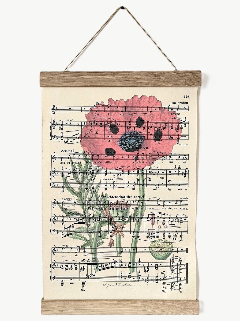 Jemná krása vlčích máků vytištěná na autentickém notovém papíře z 2. poloviny 19. století přinese vašemu domovu spojení elegance přírody a kouzla hudební historie. Tento originální tisk přináší do vašeho interiéru romantickou vintage atmosféru s dotekem starých časů.
