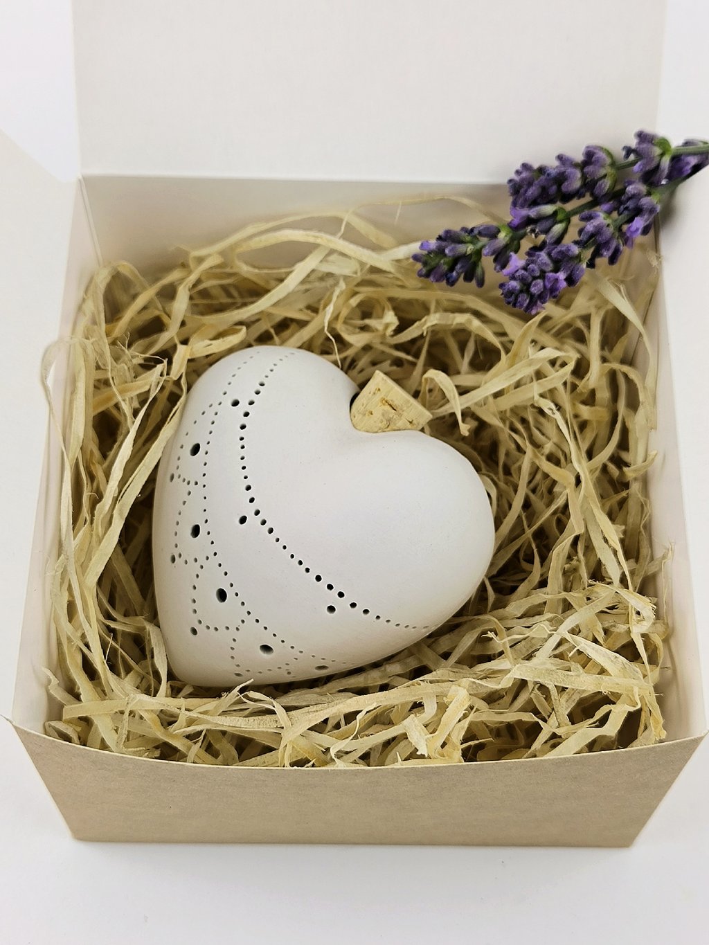 Provoňte si svou šatní skříň nebo zásuvku krásným, ručně vyráběným porcelánovým srdíčkem. Srdíčko je naplněné voňavou ručně sbíranou sušenou levandulí, která nejenže příjemně provoní vaše prádlo, ale navíc i odpuzuje moly. Pro rozvonění levandule srdíčkem jemně zatřeste nebo můžete levanduli promnout.