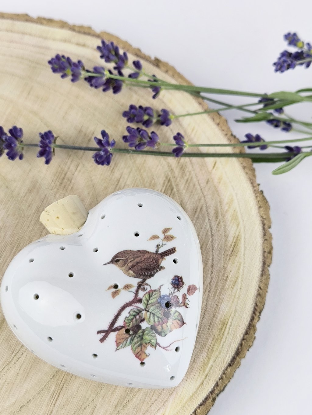 Voňavé porcelánové srdíčko plněné levandulí Střízlíček