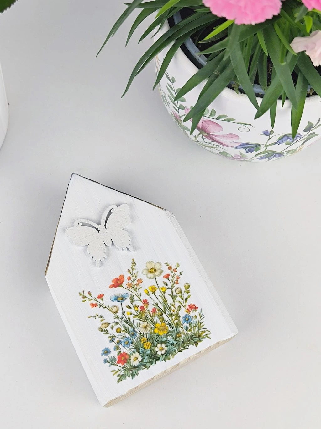 Maličkosti dělají domov. Vyzdobte si parapet nebo poličku dřevěnými domečky, krásně budou vypadat například vedle květinové dekorace.
