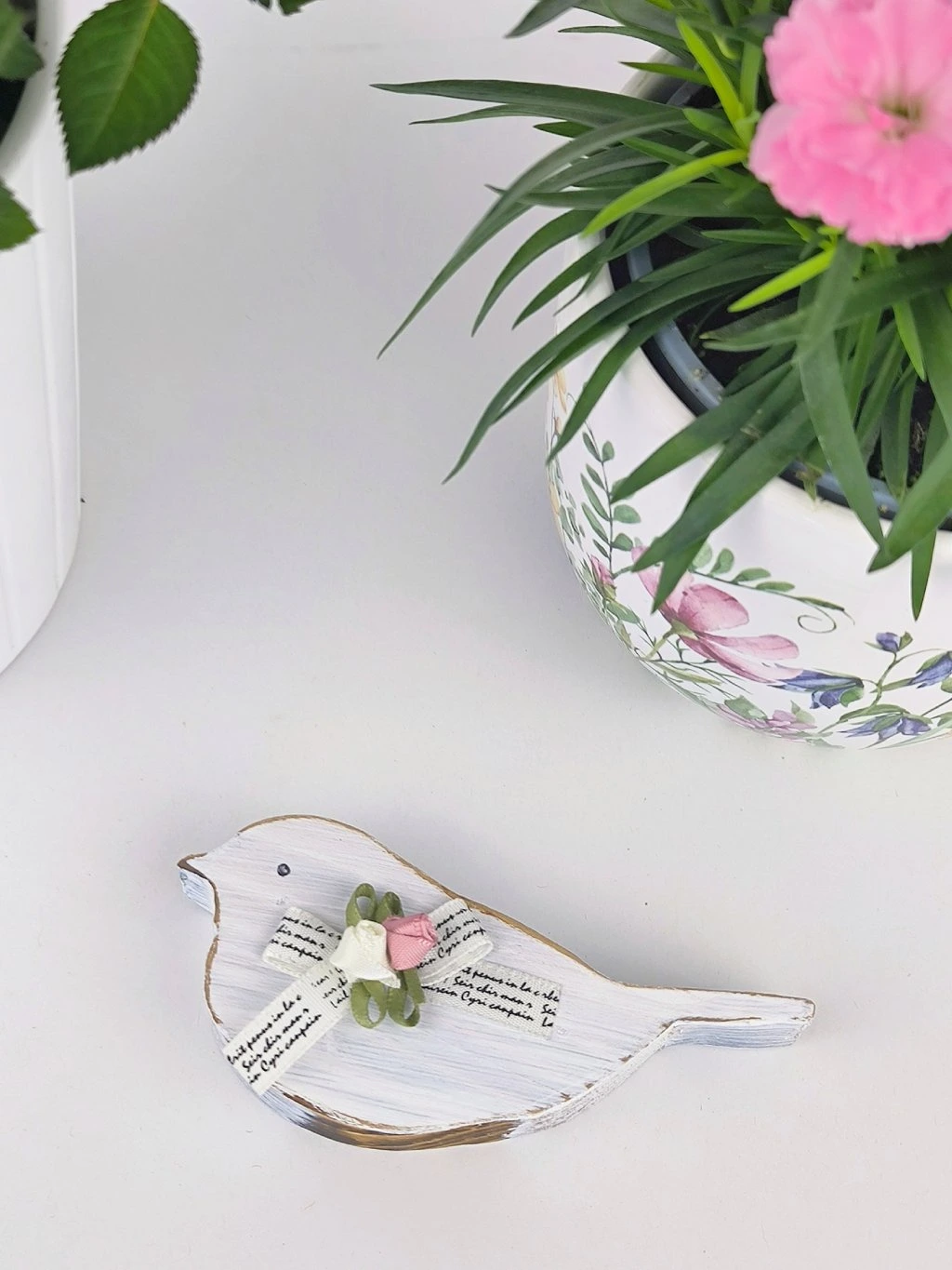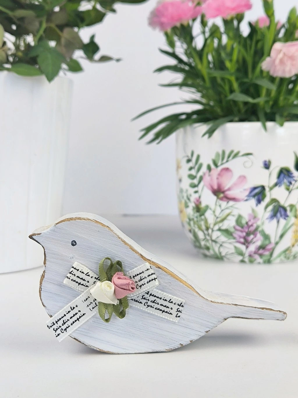 Maličkosti dělají domov. Dřevěný ptáček zkrášlí květinovou výzdobu, parapet či poličku. Česká výroba.