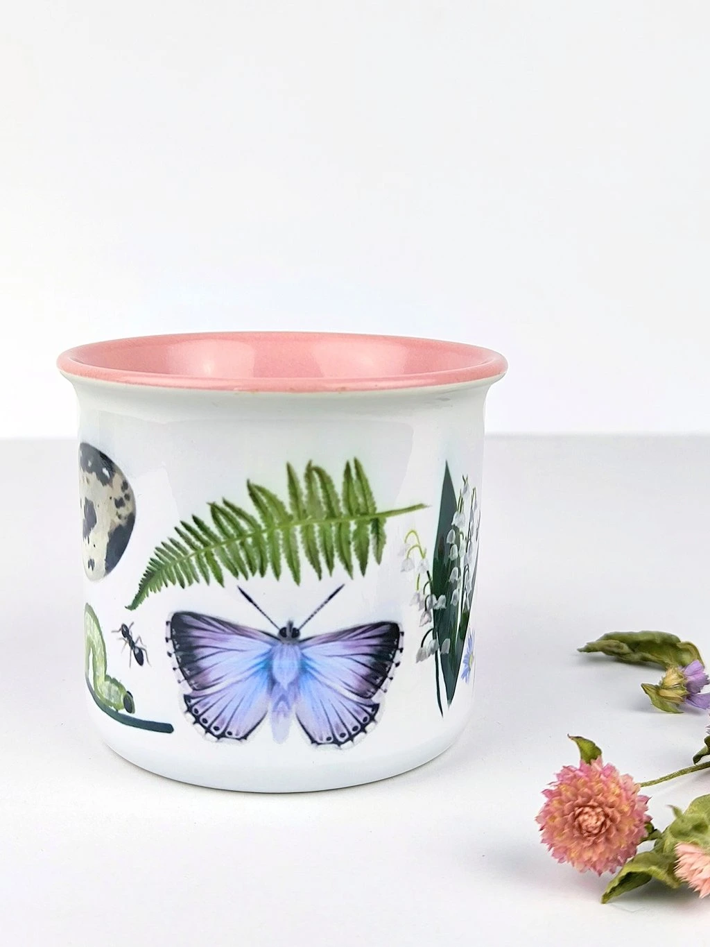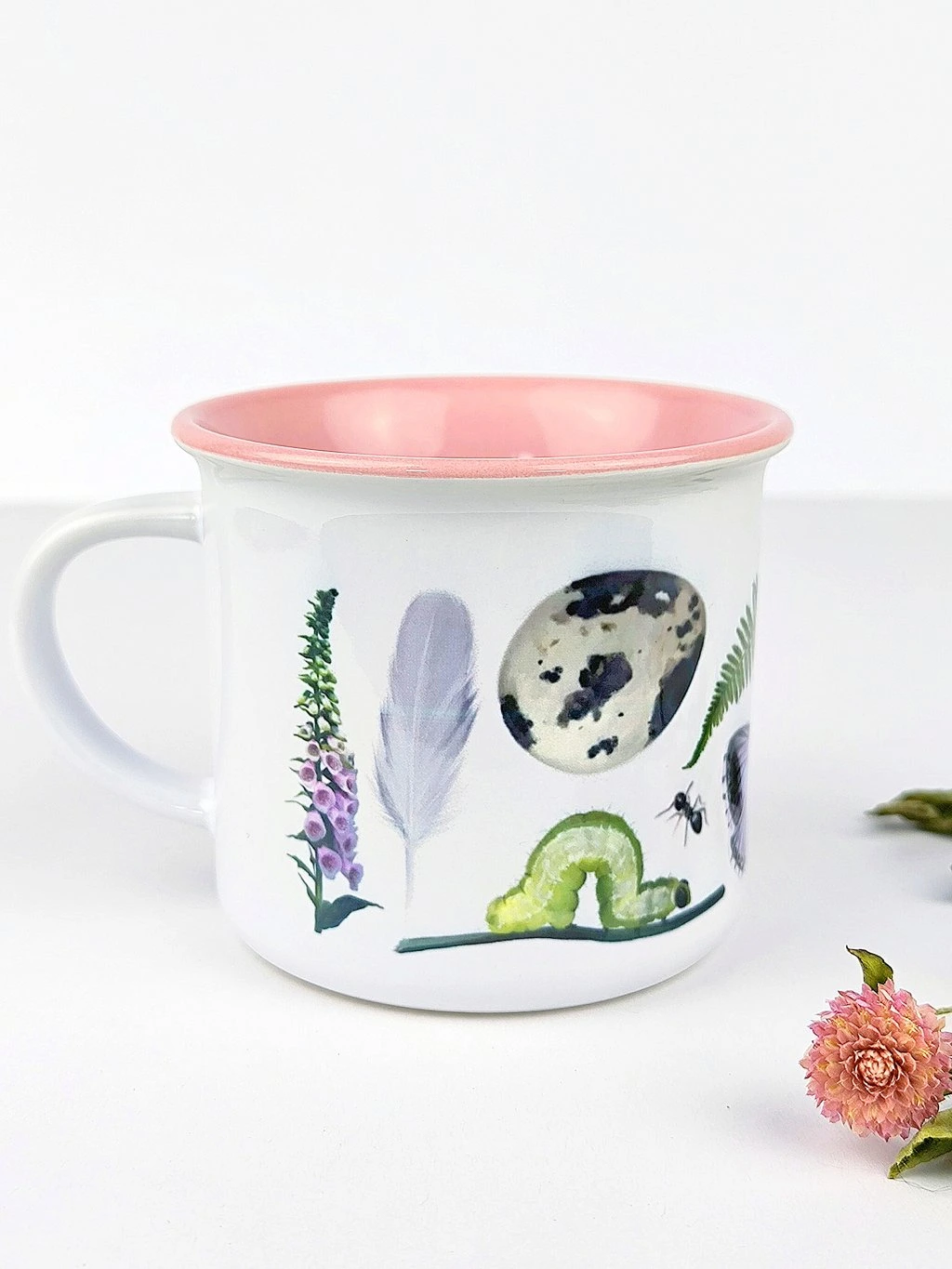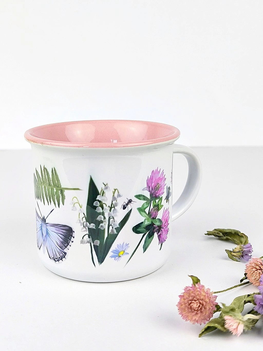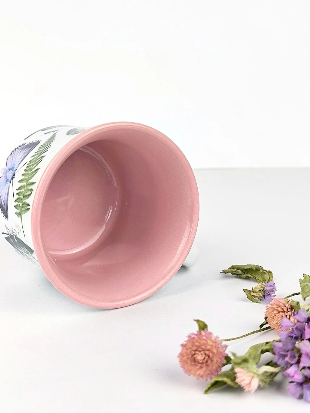 - Růžový vnitřek a lem hrníčku