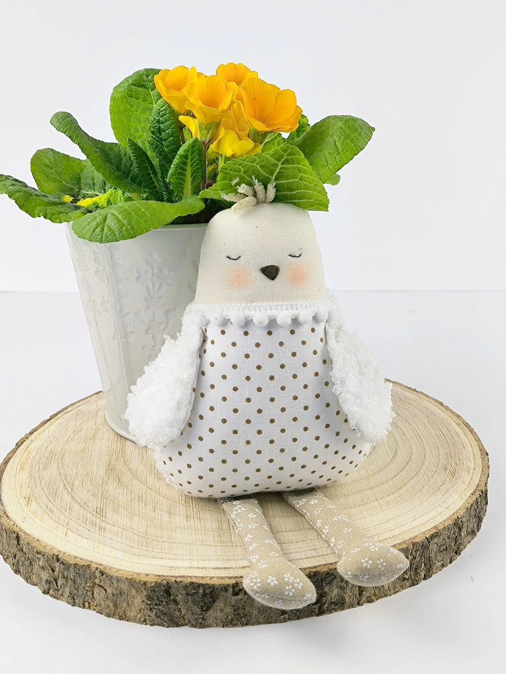 Látkový ptáček je oblíbená dekorace nejen na jarní dny. Baculatý ptáček z měkkého příjemného materiálu vás svou roztomilostí rozveselí. Ptáček je ruční výroby, je ušitý z bavlněných látek a měkoučkého buklé, vyplněný dutým vláknem, obličejík a zobáček má ručně vyšitý bavlnkou. Každý kus je originál.
