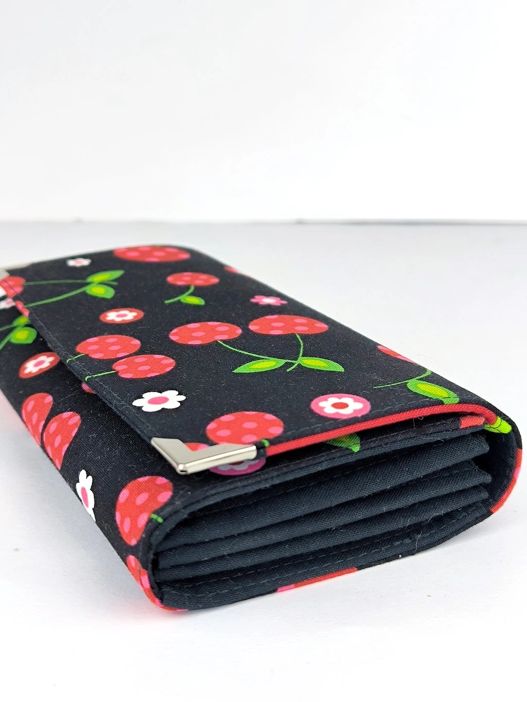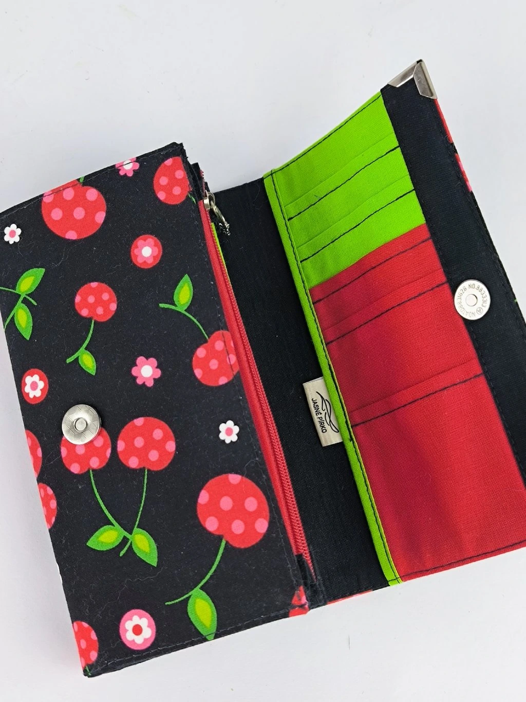 Peněženka s třešněmi zaujme na první pohled. Je prostorná a praktická, se spoustou kapes. Originální ruční zpracování.