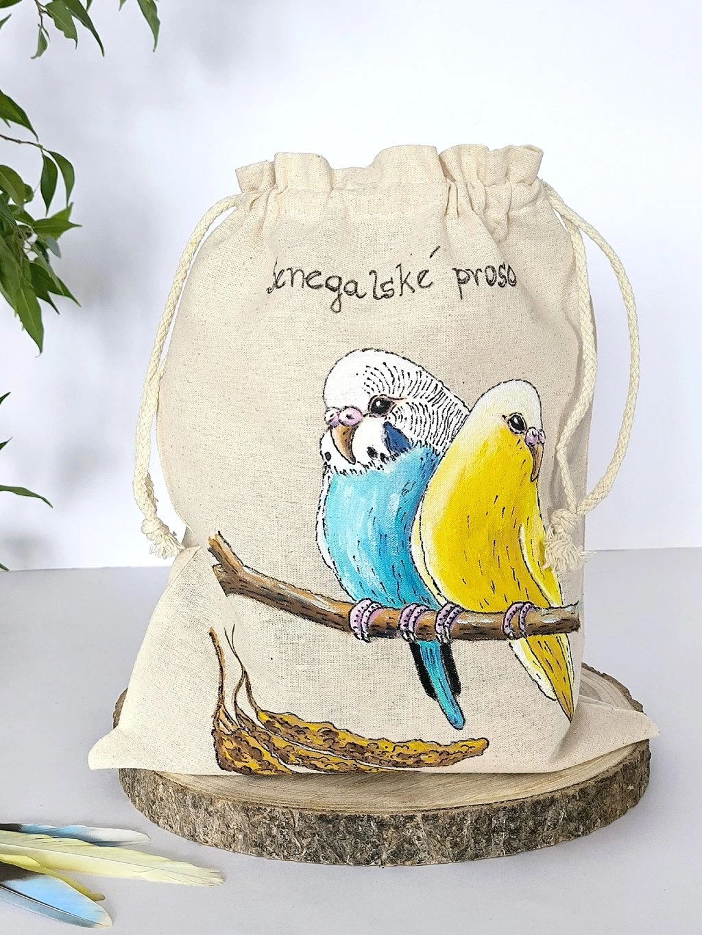 Milujete také andulky či jiné papoušky? Řešíte věčně, jak uchovávat klásky senegalského prosa pro vašeho miláčka, protože originální obal od prosa z obchodu je po natržení nepoužitelný? Můžete to vyřešit krásným ručně malovaným pytlíčkem vytvořeným pro všechny chovatele andulek.