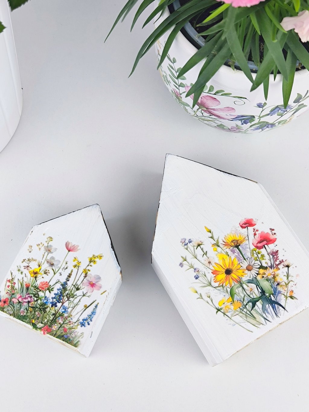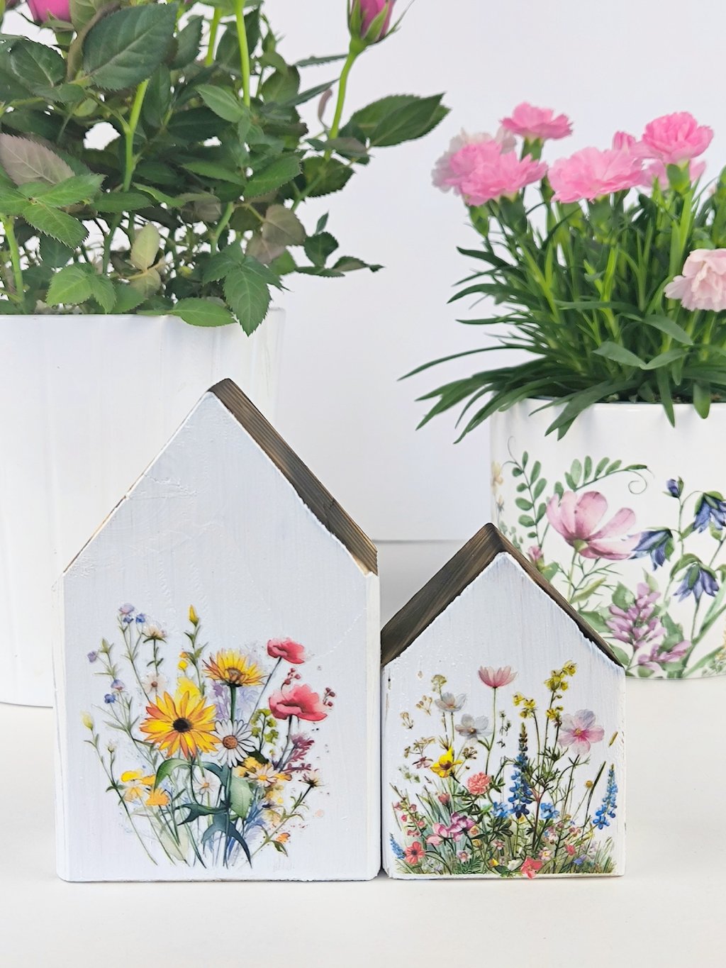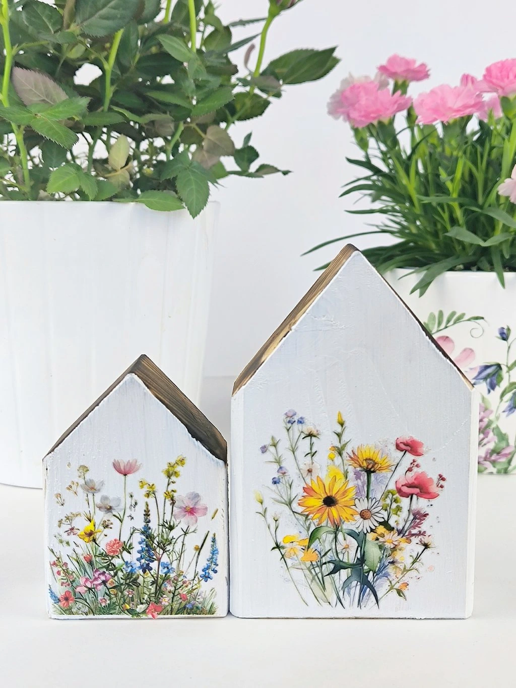 Maličkosti dělají domov. Vyzdobte si parapet nebo poličku dřevěnými domečky, krásně budou vypadat například vedle květinové dekorace.