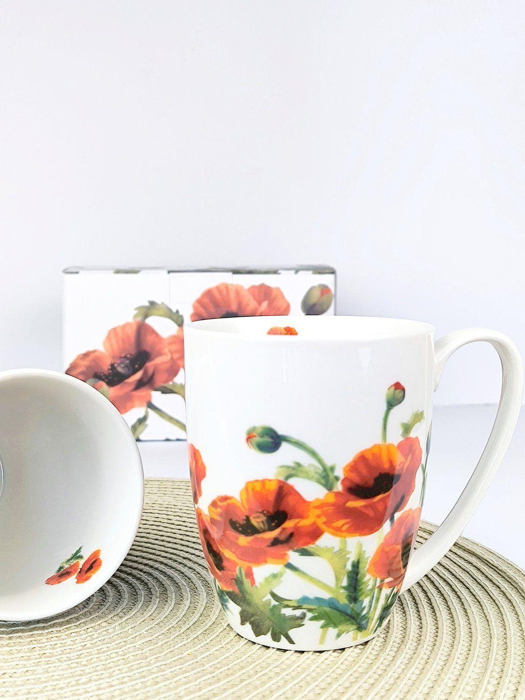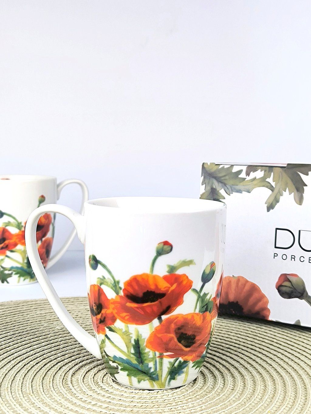 Sada dvou porcelánových hrníčků v dárkové krabičce udělá radost každé ženě. Hodí se jak na kávu, tak na čaj, rudé vlčí máky navodí příjemnou letní atmosféru.